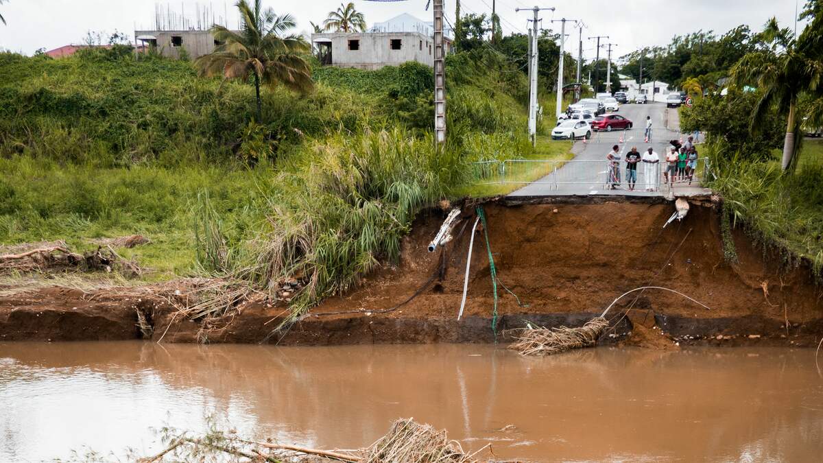 The storm washed away a bridge in the central mountain town of Utuado that police say was installed by the National Guard after Hurricane Maria hit in 2017. Large landslides also were reported, with water rushing down big slabs of broken asphalt and into gullies.